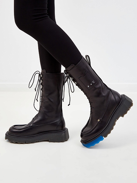 Высокие ботинки из кожи на массивной подошве-colorblock