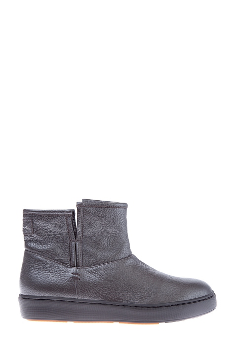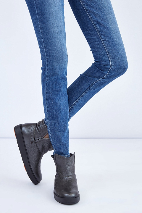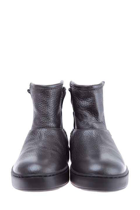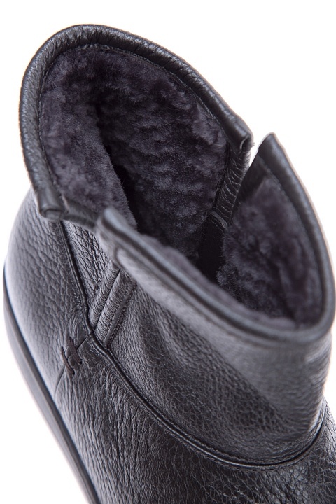 Ботинки из галечной кожи с утеплением мехом и плотной подошвой
