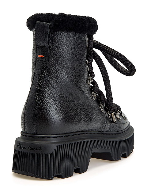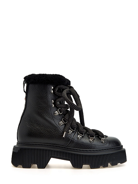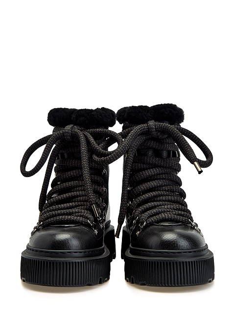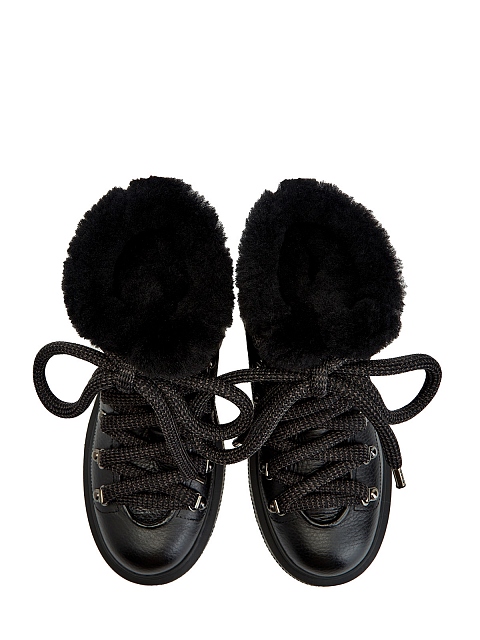 Ботинки из крупнозернистой кожи с меховой отделкой и шнуровкой