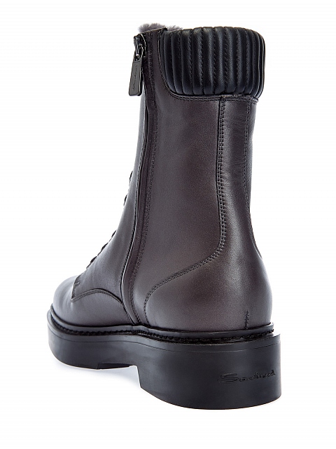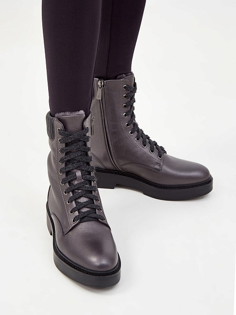 Высокие ботинки из кожи на шнуровке с меховой отделкой