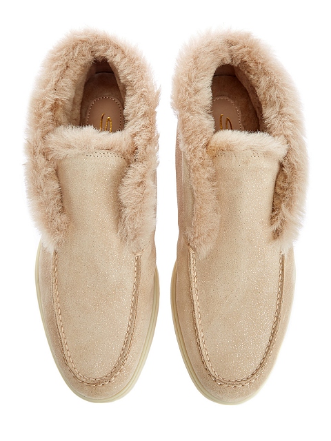 Замшевые ботинки с мерцающим напылением и густым мехом