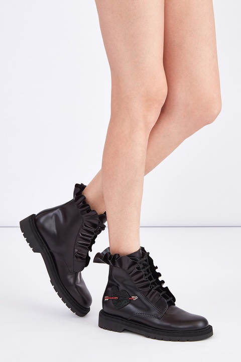 Ботинки на массивной подошве с вышивкой ручной работы и оборками