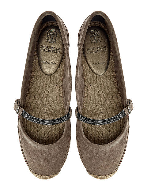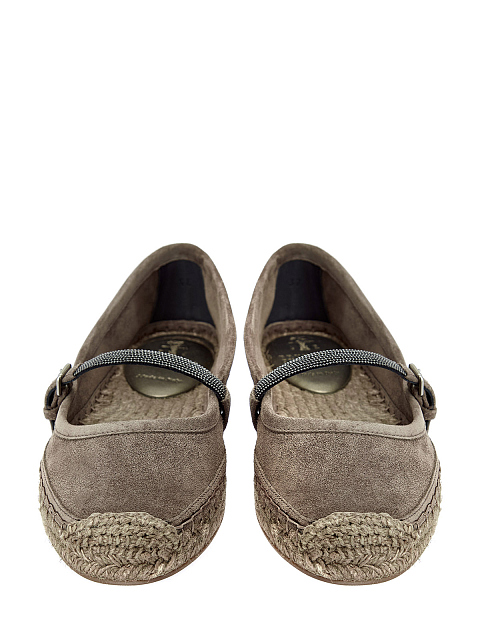 Стильные и комфортные эспадрильи от Brunello Cucinelli сочетают изящные детали и необычный контраст текстур. Классическая летняя модель выполнена вручную из ценной замши, вышивка рядами ювелирной цепочки Мониль завершает регулируемый ремешок спереди и добавляет образу сияющий акцент. Подошва из джута создает утонченный контраст с мягкой кожей, а низ подошвы из ЭВА обеспечивает комфорт при носке. Сделано в Италии.