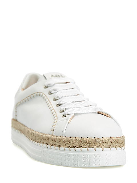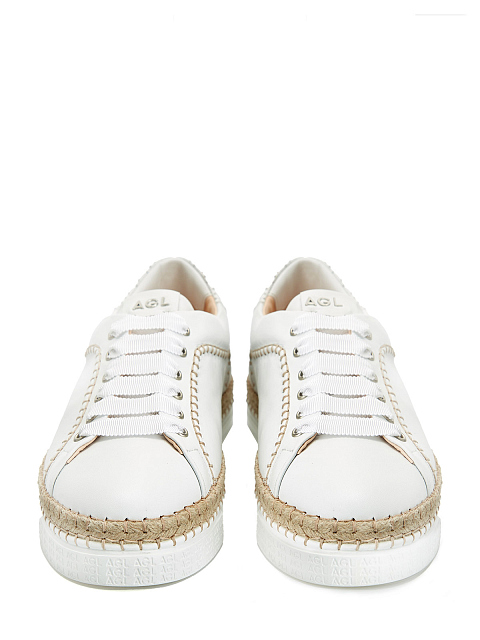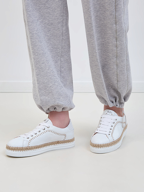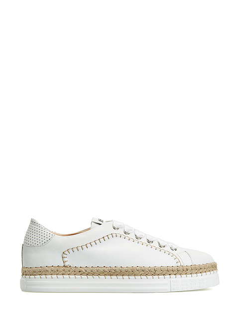 Кожаные кеды с фактурной прострочкой и рантом из джута