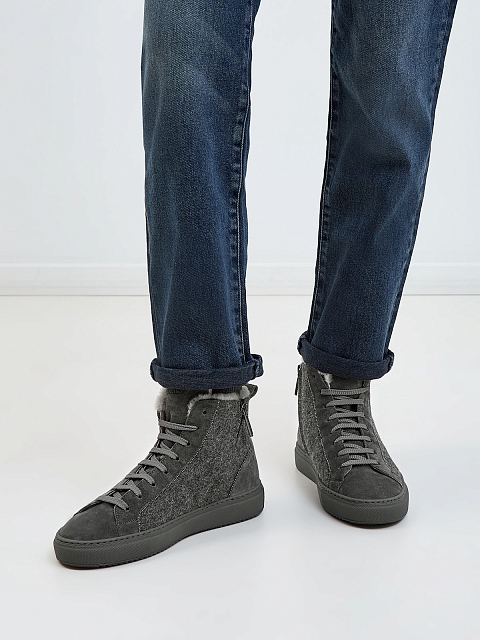 Утепленные кеды из фетра и замши с ювелирными цепочками