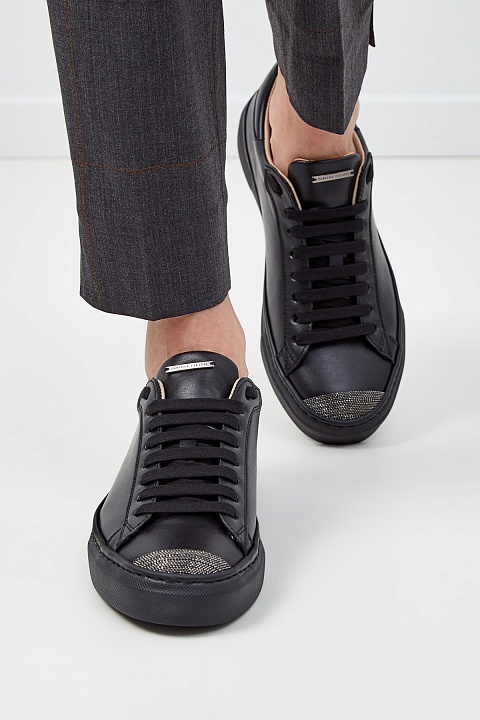 Кожаные кеды с мерцающей вышивкой