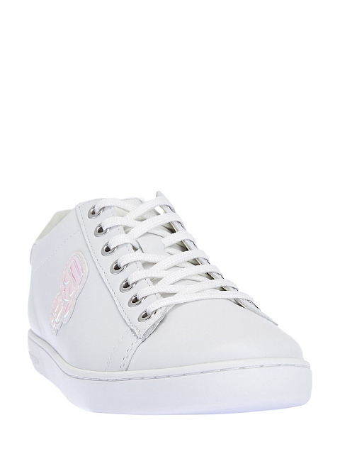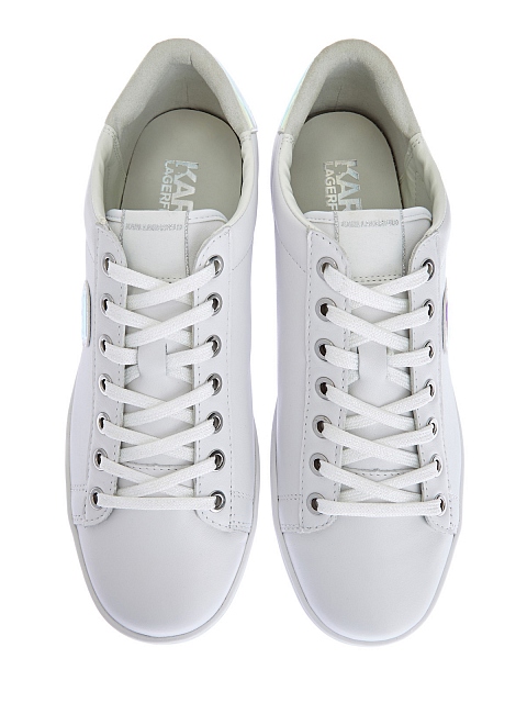 Стильные кеды K/IKONIK от Karl Lagerfeld выполнены из гладкой кожи белого тона. Фирменный стиль подчеркивает объемная неоновая аппликация с графичным изображением дизайнера. Модель дополнена вставками из металлизированной кожи розового оттенка. Детали: тисненый логотип на массивной подошве, мягкие вставки и кожаная стелька внутри.