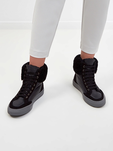 Высокие кеды с овечьим мехом и символикой из кристаллов
