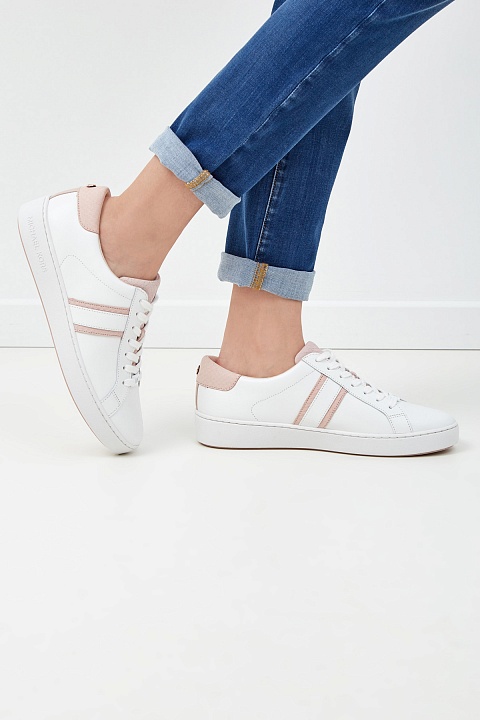 Базовые кеды в стиле спортшик от MICHAEL Michael Kors выполнены из кожи в пастельной бело-розовой гамме. Элементы с тиснением под кожу рептилии дополнены матовыми вставками. Фирменный стиль подчеркнут литой отделкой с логотипом бренда на шнуровке и спинке модели. Амортизирующая подошва подчеркивает классические линии и обеспечивает комфорт в течение дня. Длина стельки для размера 9.5 составляет 26 см.
