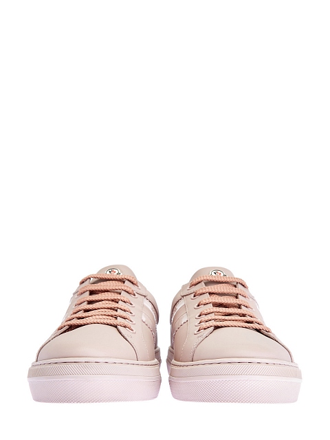 Элегантные женские кеды от Moncler выполнены из матовой кожи в пудрово-розовом оттенке. Минималистичный дизайн делает модель идеальной для составления повседневных образов. Фирменный стиль подчеркивают глянцевые вставки и объемный логотип из силикона. Детали: литая подошва с рельефным рантом, круглый мысок, противоскользящий протектор.