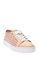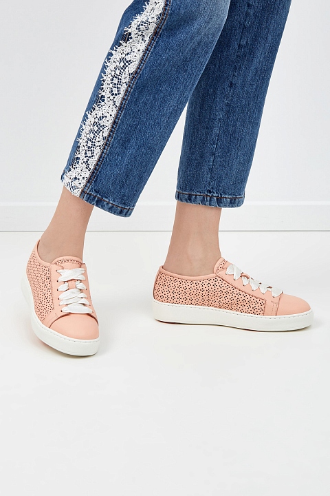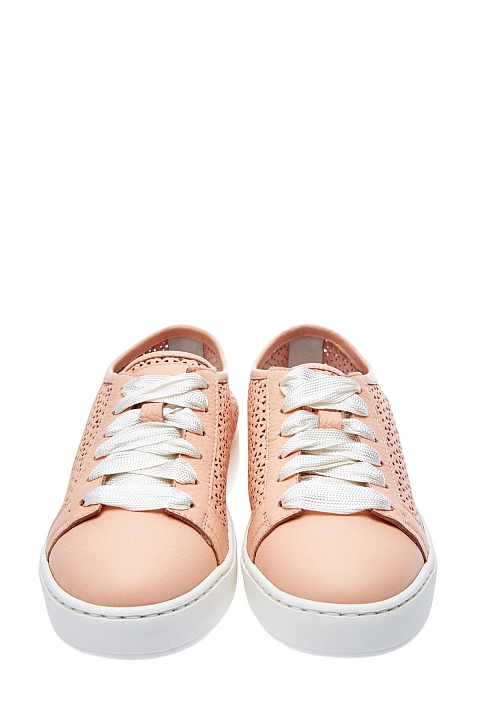 Оригинальные кеды от Santoni выполнены из матовой крупнозернистой кожи в пудрово-розовом цвете. Перфорация с кружевным эффектом делает модель идеальной для летнего сезона. Внутренняя отделка из кожи и амортизирующая подошва обеспечивают максимальный комфорт в течение дня. Детали: контрастные шнуровка и рант, классический дизайн. Сделано в Италии.