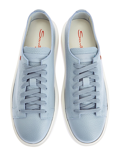 Женские кеды от Santoni выполнены из крупнозернистой кожи в базовом голубом оттенке. Минималистичное исполнение делает модель универсальным элементом повседневного гардероба. Внутренняя отделка из кожи и литая амортизирующая подошва обеспечивают максимальный комфорт в течение дня. Сделано в Италии.