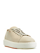 Женские кеды от Santoni выполнены из гладкой кожи в универсальном бежевом оттенке. Минималистичное исполнение делает модель универсальным элементом повседневного гардероба. Внутренняя отделка из кожи и литая амортизирующая подошва обеспечивают максимальный комфорт в течение дня. Сделано в Италии.