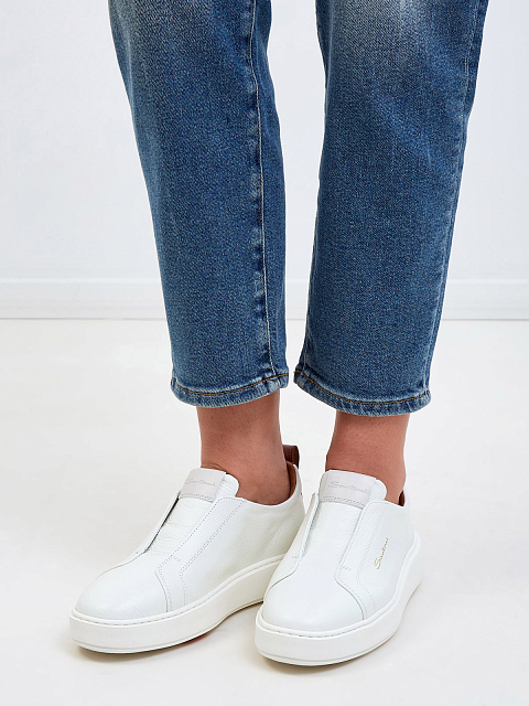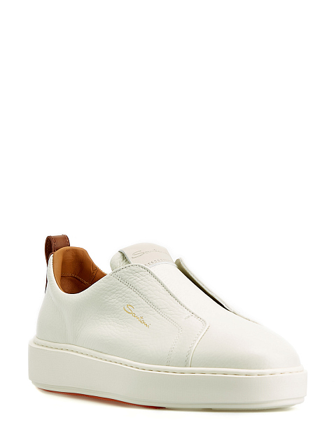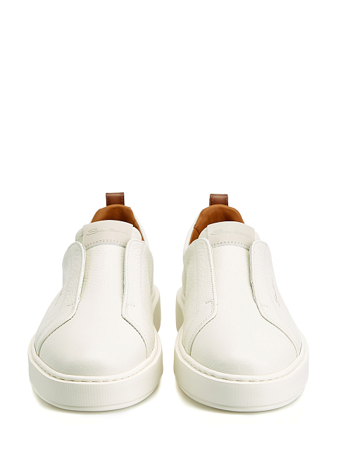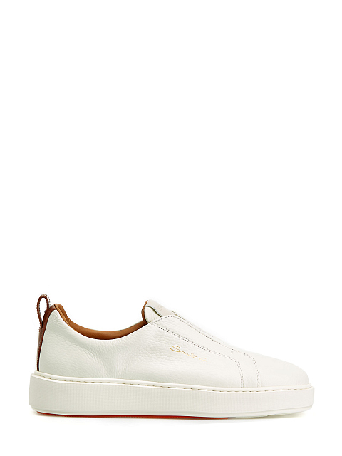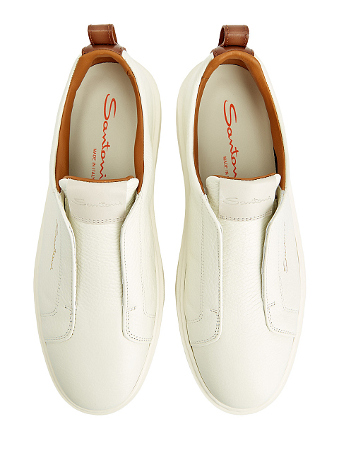 Кеды из крупнозернистой кожи без шнуровки с контрастной отделкой