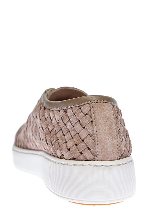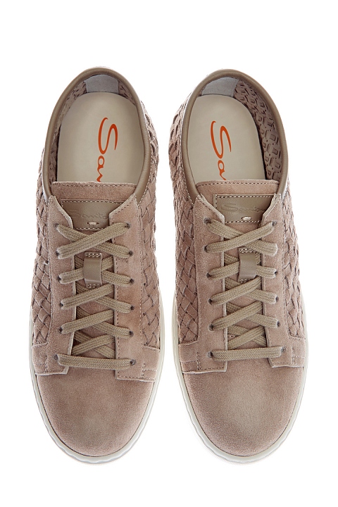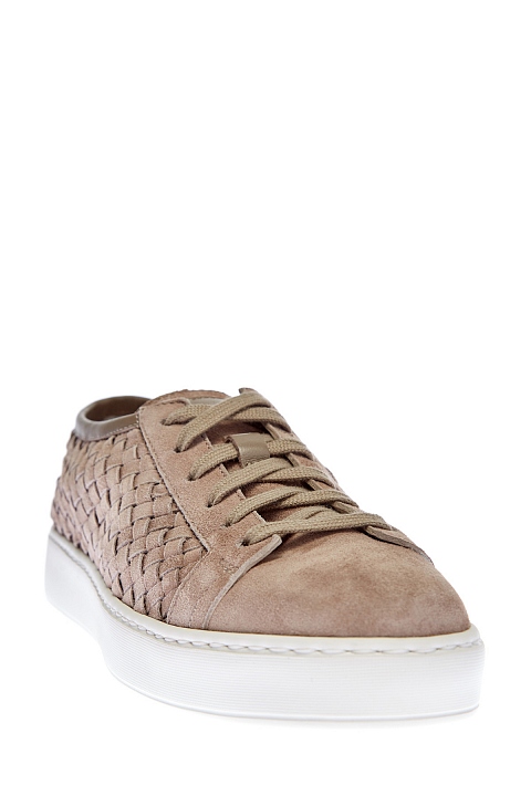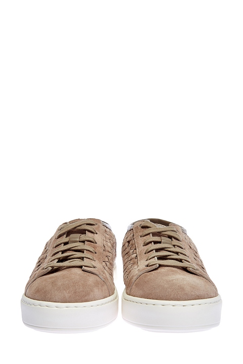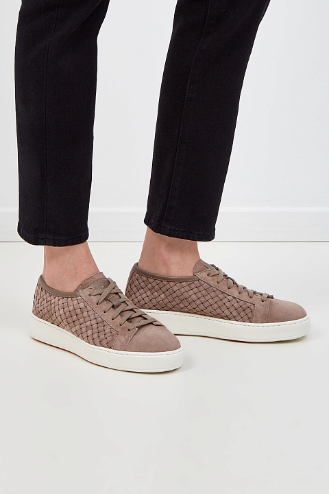 Минималистичные женские кеды от Santoni выполнены из мягкой и эластичной замши. Плетеная вручную фактура делает модель особенно актуальной в летний сезон. Классический дизайн с закругленным мыском дополнен широкой шнуровкой в тон и массивной литой подошвой. Внутренняя отделка из кожи обеспечивает комфорт в течение всего дня. Сделано в Италии.