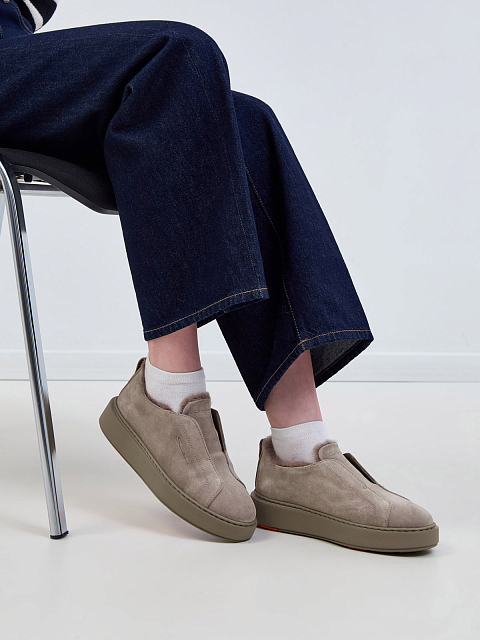 Замшевые кеды с подкладкой из меха ягненка