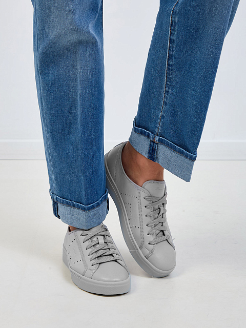 Кеды из кожи с перфорированным декором и отделкой грогрен
