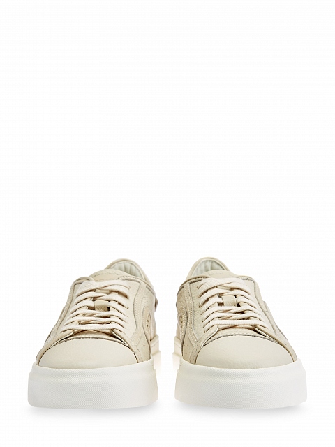 Кеды из фактурной крупнозернистой кожи от Santoni. Лаконичная модель с перфорацией по бокам дополнена формованным рантом и сверхлегкой амортизирующей подошвой. Поверхность с фигурными швами подчеркивает эстетику спортивного стиля. Детали: внутренняя отделка из мягкой кожи, шнуровка в тон. Сделано в Италии.