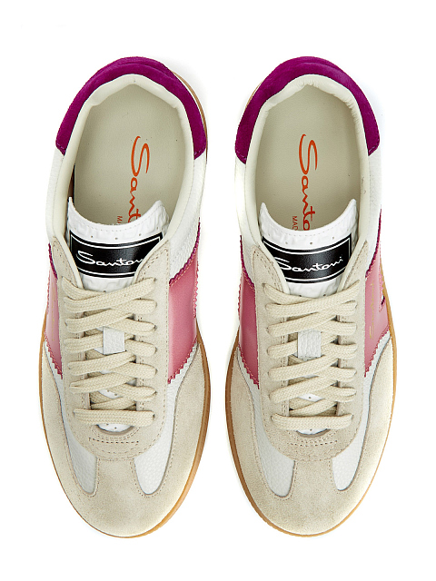 Комбинированные женские кеды DBS Oly от Santoni сочетают мягкую крупнозернистую кожу и отделку из замши. Модель в стиле обуви для тенниса 70-х годов добавит неформальный акцент вашему образу. Эффектный штрих — яркая замшевая вставка на спинке и боковые детали из гладкой кожи с эффектом патины. Сделано в Италии.