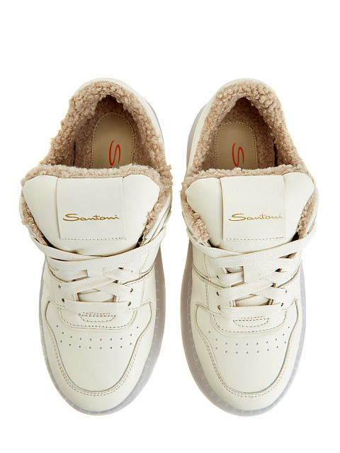 Утепленные кеды из мягкой кожи и ширлинга с прозрачным рантом