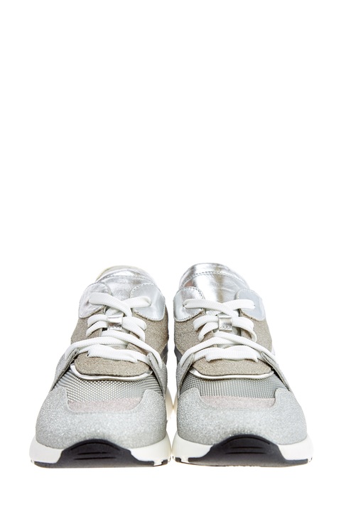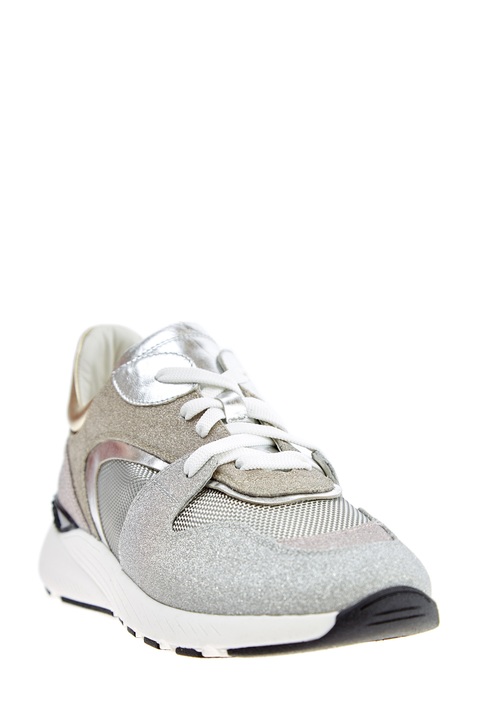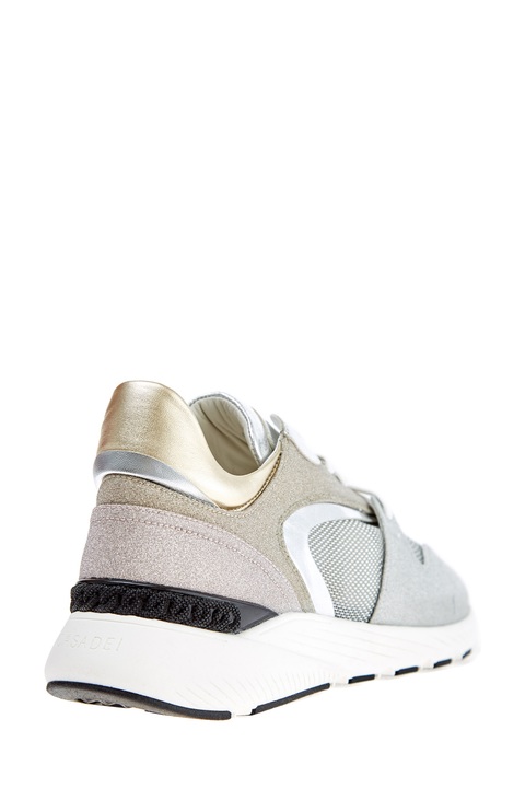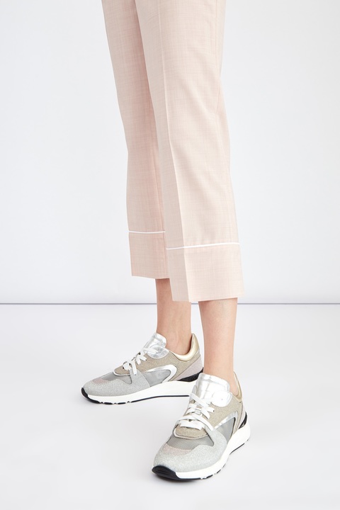 Мерцающие кроссовки в стиле спортшик от Casadei выполнены из натуральной кожи с усыпанной мелким шиммером поверхностью. Массивная амортизирующая подошва дополнена накладкой с объемным узором в виде звеньев цепи. Детали: отделка из кожи с металлизированным покрытием, дышащие сетчатые вставки, закругленный мысок. Сделано в Италии.