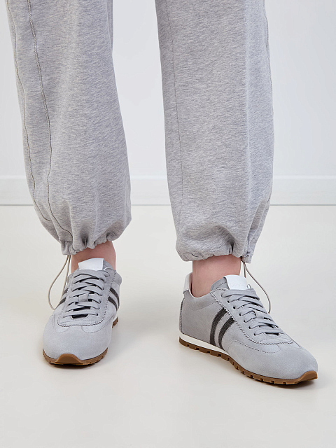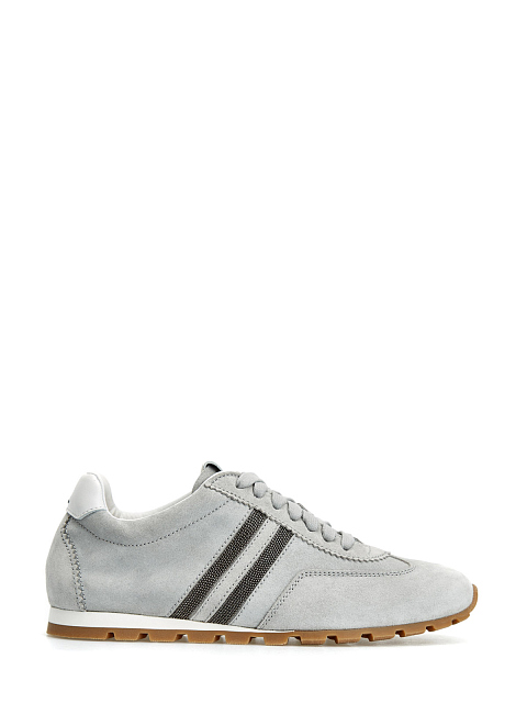Замшевые кроссовки с полосками из ювелирных цепочек