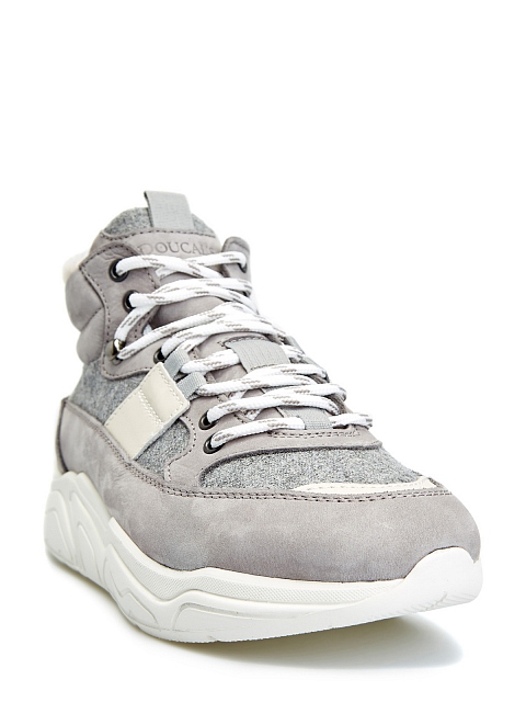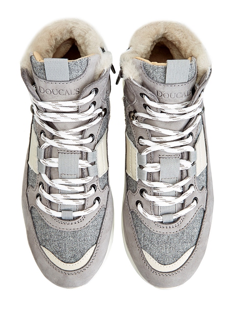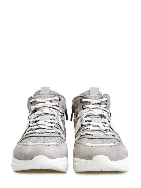 Стильные женские кроссовки High Top от Doucal’s сочетают бархатистую замшу и фактурный войлок. Сдержанная цветовая гамма делает модель универсальным дополнением образов в спортивном и повседневном стиле. Подкладка из густого овечьего меха обеспечивает тепло в условиях низких температур. Детали: массивная подошва, застежка на молнию и шнуровку. Сделано в Италии.