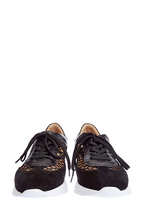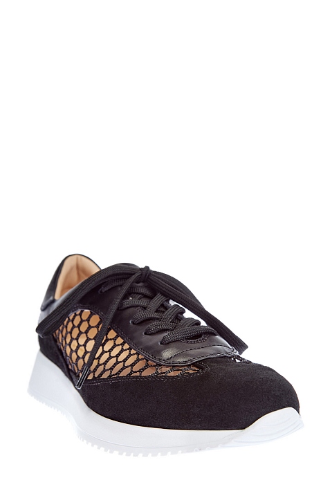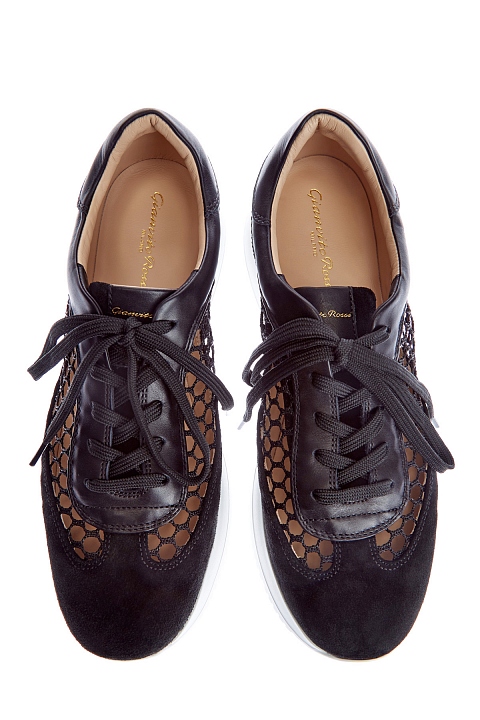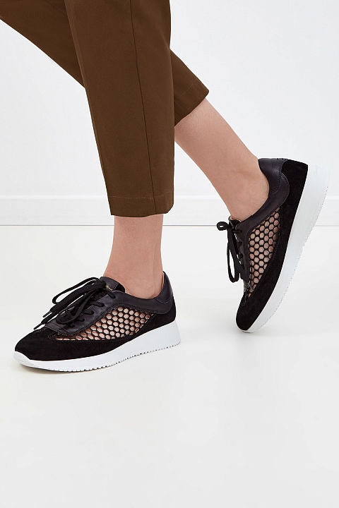 Кроссовки из кожи и замши с ажурными сетчатыми вставками