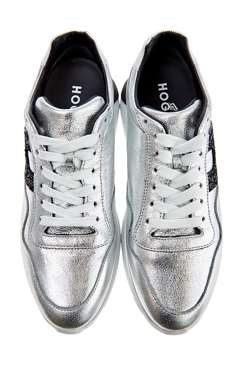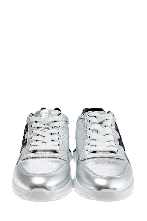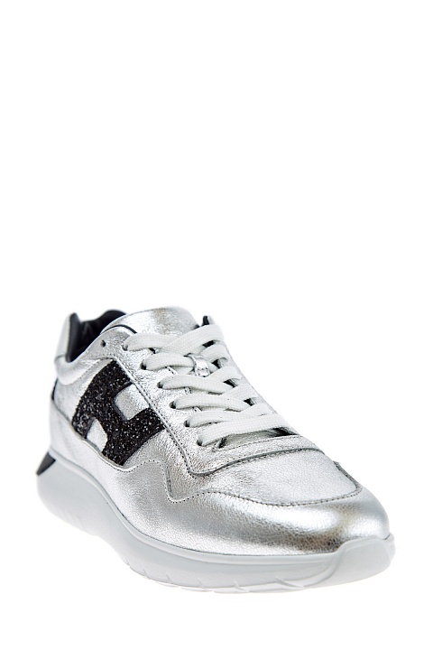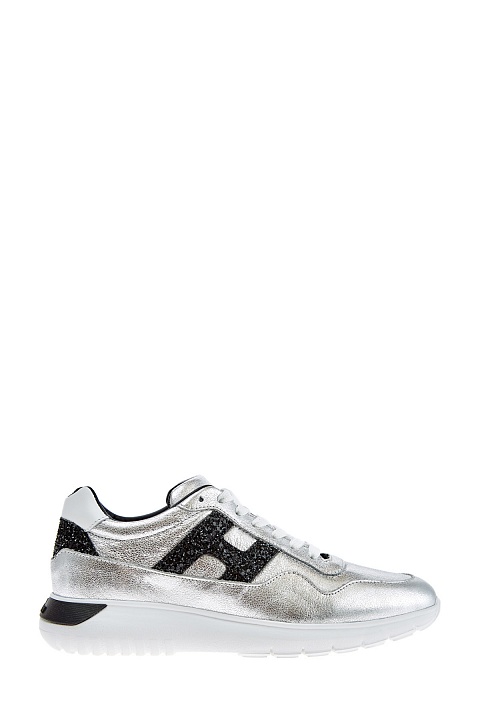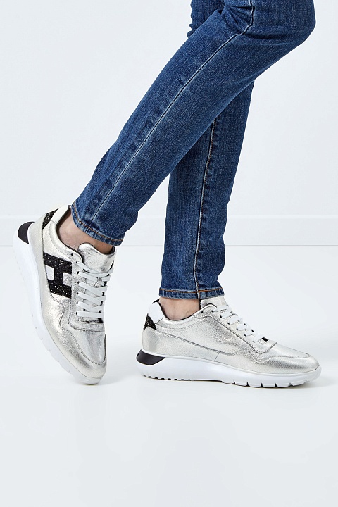 Яркие кроссовки Interactive³ от Hogan выполнены в бело-серебристой гамме из кожи с матовой текстурой и выраженным натуральным узором на поверхности. Боковые панели декорированы логотипом бренда, который инкрустирован мерцающими блестками и перекликается с отделкой на спинке. Сверхлегкая литая подошва обеспечивает комфорт в течение дня. Детали: внутренняя отделка из кожи, выступающий рант с тисненой монограммой.