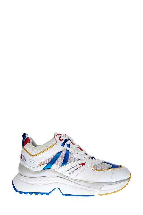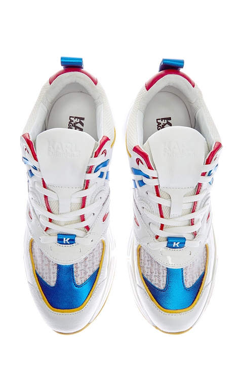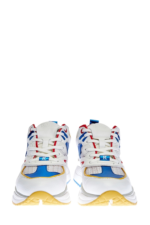 Яркие кроссовки Aventur Delta от Karl Lagerfeld созданы в стиле урбан. Модель сочетает элементы из металлизированной кожи и шерстяного твида. Сегментированная подошва дополнена перламутровой прослойкой на ранте, которая придает образу нотку фирменного гламура. Контрастные вставки горчичного оттенка подчеркивают динамичные линии кроя.