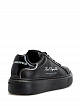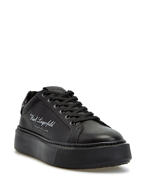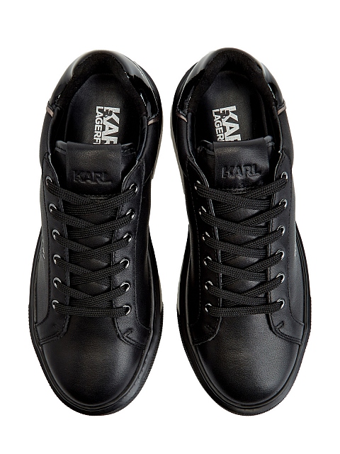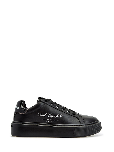Стильные женские кеды из коллекции Hotel KARL от Karl Lagerfeld выполнены из матовой мелкозернистой кожи в черном цвете. Фирменный штрих — принт Rue St-Guillaume на боковых панелях и глянцевые вставки с монограммой бренда на спинке. Литая массивная подошва из амортизирующего каучука обеспечивает комфорт в движении.