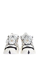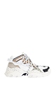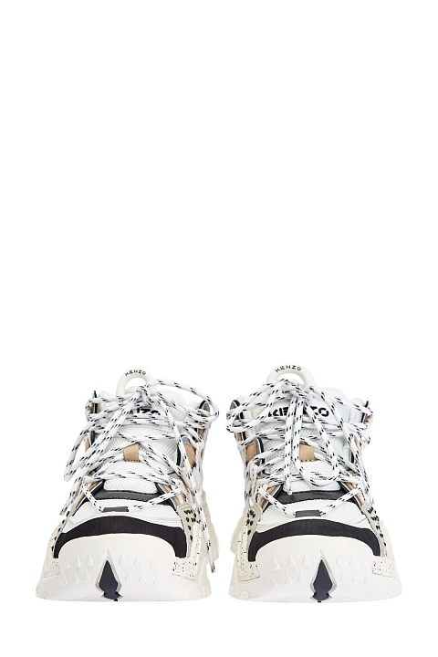 Эффектные женские кроссовки Inka от Kenzo созданы в светлых тонах с бежевыми вставками. Сочетание гладкой кожи, бархатистой замши и сетчатого текстиля придает изделию динамичный акцент и идеально подходит для завершения повседневных образов. Массивная подошва из вулканизированной резины с противоскользящим покрытием обеспечивает дополнительный комфорт. Детали: усиленная шнуровка в спортивном стиле, фигурная отделка, логотип с монограммой бренда на передней поверхности.