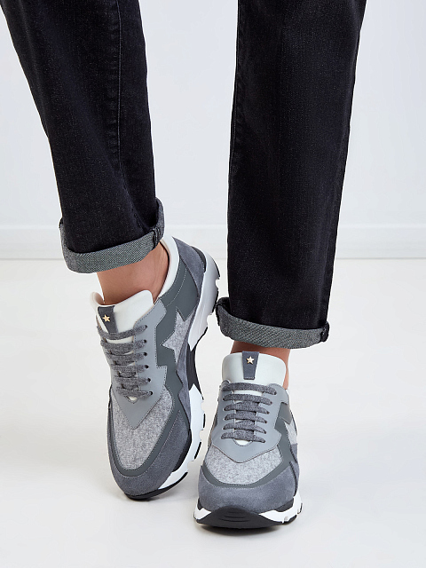 Комбинированные кроссовки из гладкой кожи, замши и шерсти