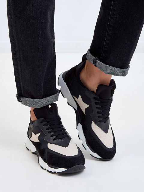 Утепленные мехом кроссовки из кожи, замши и текстиля