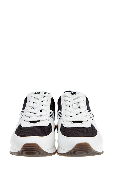 Легкие кроссовки Allie от MICHAEL Michael Kors выполнены в монохромной гамме из матовой кожи и дышащего мембранного текстиля. Массивная подошва дополнена прозрачной амортизирующей вставкой, которая обеспечивает комфорт при ходьбе и делает модель актуальной как для повседневных прогулок, так и для занятий спортом. Литые логотип и монограмма завершают дизайн.