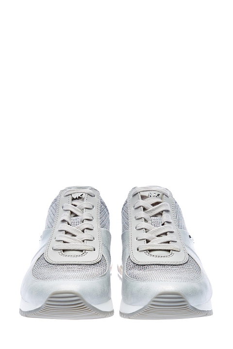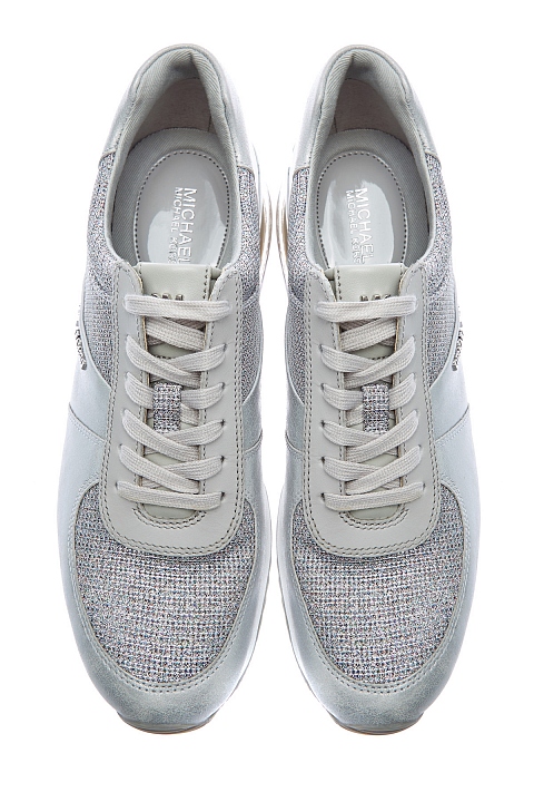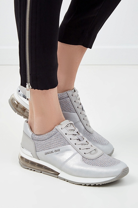 Стильные кроссовки Allie Extreme от MICHAEL Michael Kors сочетают металлизированную кожу и дышащую мембрану. Нити люрекса в составе придают поверхности искристый эффект. Вставки из прозрачного полимера на подошве обеспечивают амортизацию и сохраняют ощущение комфорта в течение всего дня. Детали: металлизированные накладки с монограммой, длина по стельке в размере 9.5 составляет 28 см.
