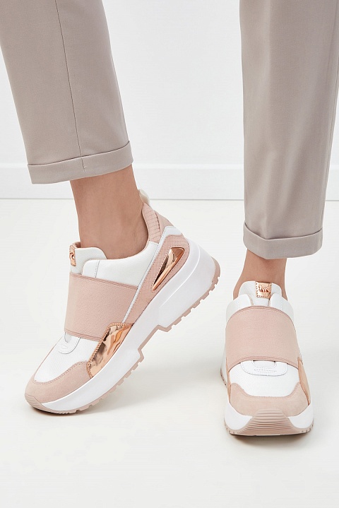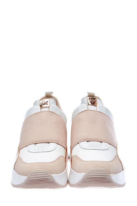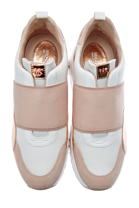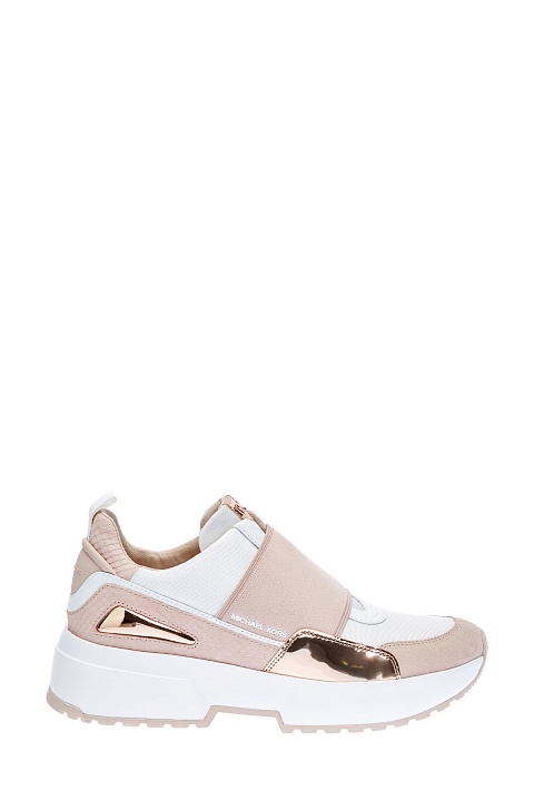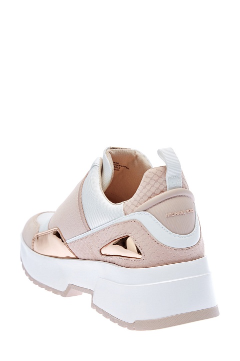 Стильные кроссовки от MICHAEL Michael Kors сочетают элементы из кожи, замши и матовой парусиновой ткани. Модель выполнена в оттенке розового золота и дополнена вставками с тиснением под кожу рептилии. Практичная эластичная лента заменяет шнуровку и позволяет быстро снимать и надевать обувь. Платформа высотой 5 см из амортизирующего вспененного каучука обеспечивает комфорт. Длина стельки для размера 9 составляет 25 см.