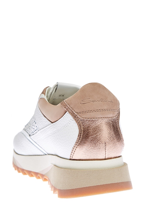 Оригинальные кроссовки от Santoni выполнены из матовой крупнозернистой кожи и бархатистой замши. Перфорация с кружевным эффектом делает модель идеальной для летнего сезона. Образ в стиле спортшик создает сочетание акцентов цвета металлик и массивной рифленой подошвы из легкого вспененного полимера. Внутренняя кожаная отделка обеспечивает максимальный комфорт в течение дня. Сделано в Италии.