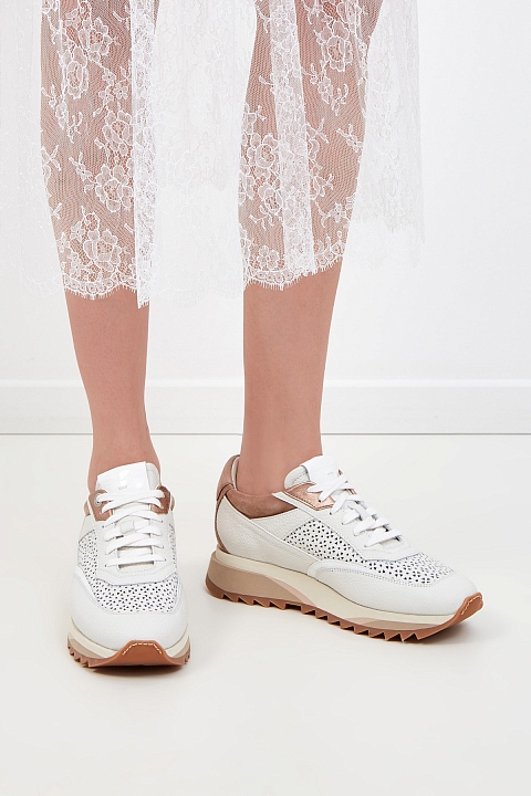Кроссовки из перфорированной кожи с кружевным эффектом