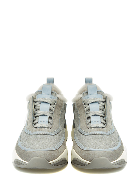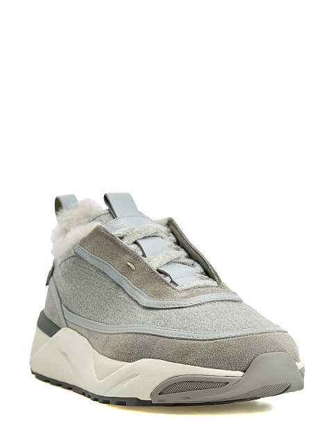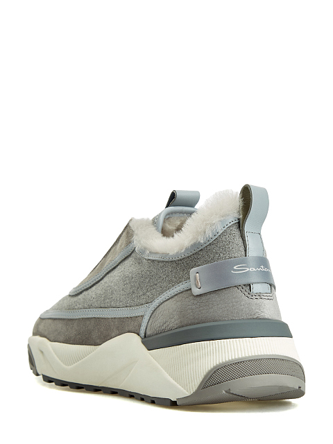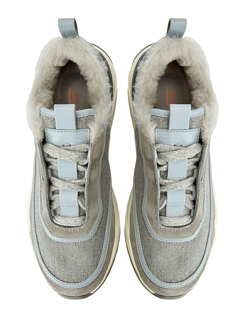Комбинированные женские кроссовки от Santoni выполнены из плотного меланжевого текстиля, замши и матовой кожи. Подкладка из густого овечьего меха обеспечивает максимальный комфорт в зимний сезон. Универсальная модель дополнит как повседневный, так и спортивный образ за счет актуальной массивной подошвы и лаконичной серой гаммы. Сделано в Италии.
