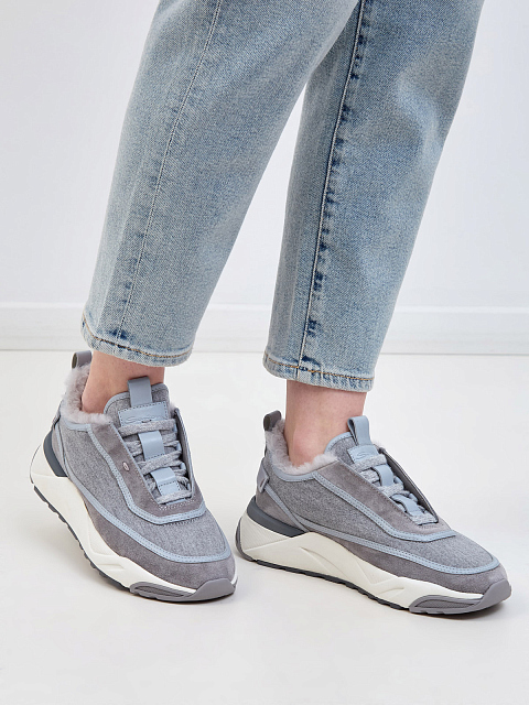 Комбинированные кроссовки из замши и текстиля с меховой подкладкой