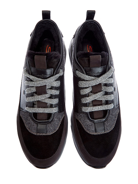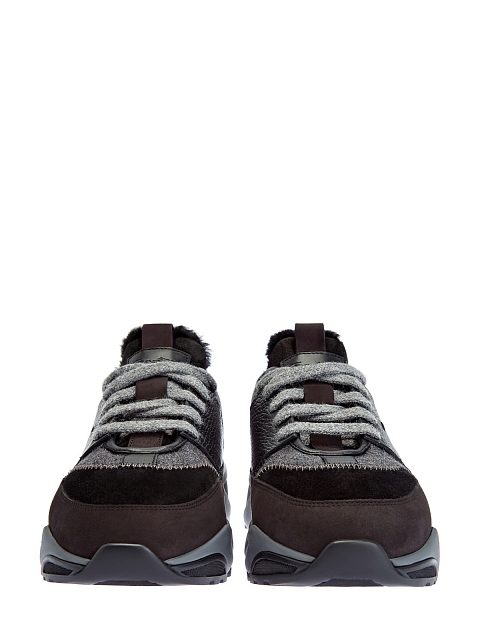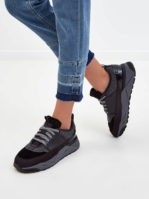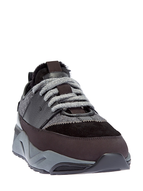 Утепленные кроссовки из кожи, замши и шерстяного твида