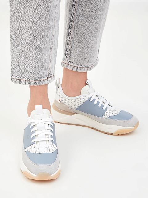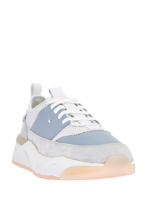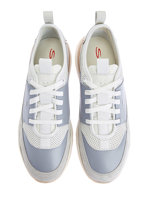 Лаконичные кроссовки от Santoni выполнены в базовой серо-голубой гамме. Для создания модели была выбрана натуральная мелкозернистая кожа и фактурная замшевая отделка. Динамичные линии кроя подчеркнуты контрастным вставками, а петли на спинке вносят в образ нотку ретро-стиля. Детали: массивная литая подошва, мягкие манжеты для комфортной посадки, стелька из натуральной кожи. Сделано в Италии.