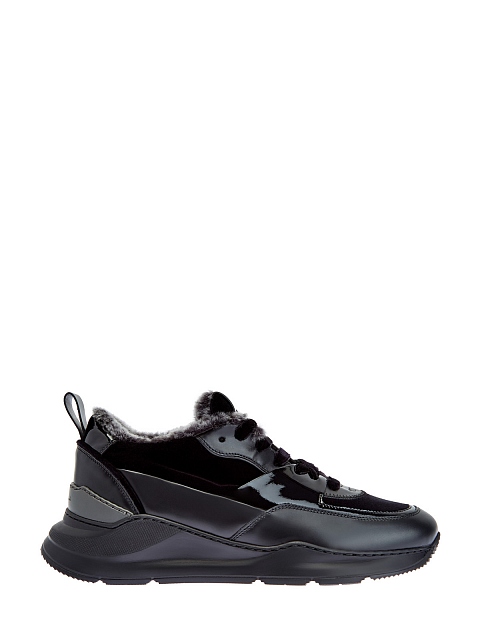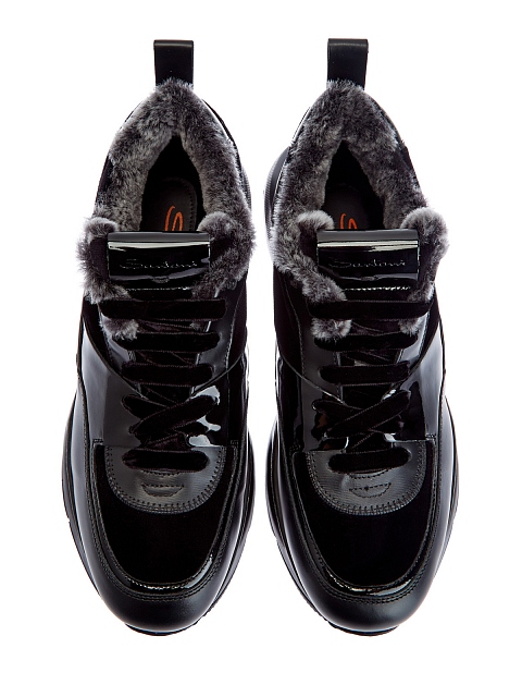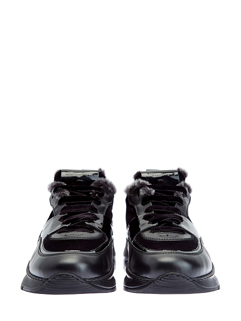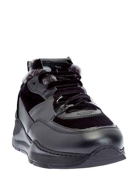 Утепленные женские кроссовки от Santoni созданы в темных тонах из гладкой кожи и бархатистого велюра. Внутренняя подкладка из натурального меха обеспечивает максимальный комфорт в холодное время года. Динамичный акцент в образ вносят глянцевые детали и высокая амортизирующая подошва с рифленым протектором. Детали: закругленный мысок, логотип бренда на спинке. Сделано в Италии.