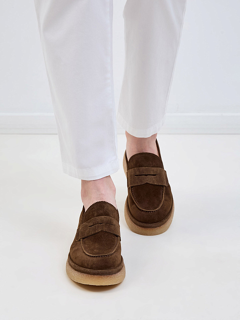 Замшевые пенни-лоферы ручной работы на высокой подошве