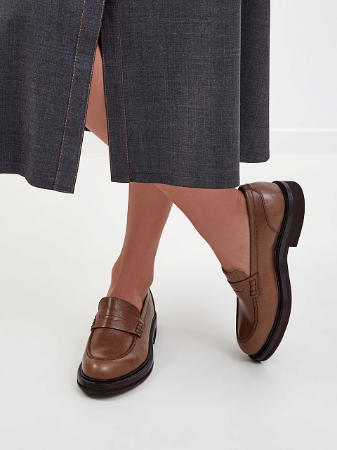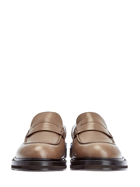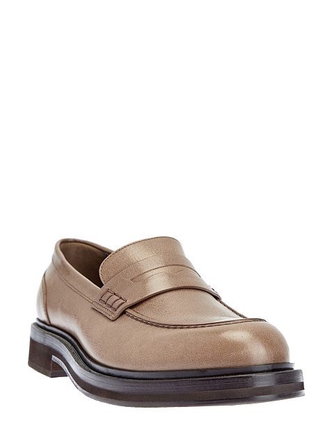 Пенни-лоферы от Brunello Cucinelli созданы из глянцевой телячьей кожи в оттенке капучино. Обувь дополнена сверкающей отделкой ручной работы — нити бусин Мониль инкрустированы в рант и создают эффект интарсии. Подкладка из замши обеспечивает максимальный комфорт. Детали: кожаная стелька, противоскользящий протектор, подошва из кожи. Сделано в Италии.