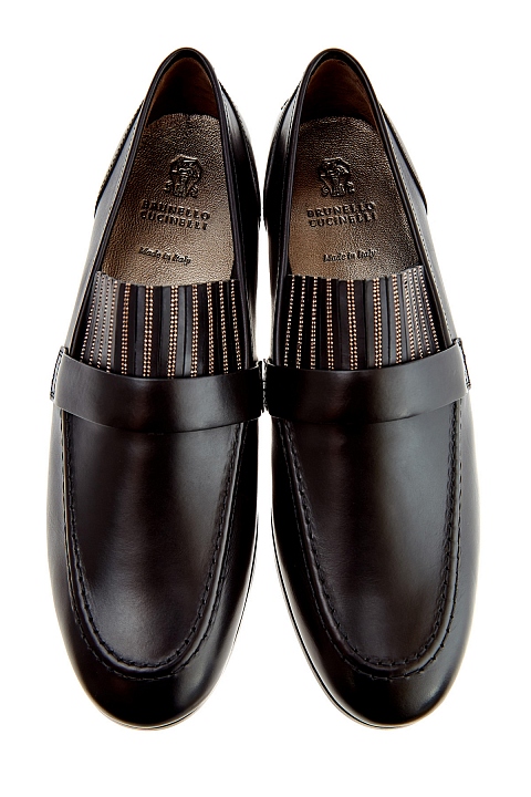 Изящные лоферы от Brunello Cucinelli-это классическая мужская модель, адаптированная под женский образ. Обувь выполнена из гладкой полированной телячьей кожи черного цвета, оттенок «мокко». Широкая бахрома, инкрустированная изящной цепочкой Мониль, придает модели нотки неформального шика. Детали: металлизированная стелька из кожи ламы, кожаная подошва, противоскользящая прорезиненная накладка. Сделано в Италии.