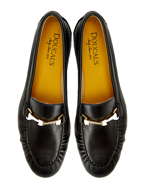 Лоферы из мягкой кожи от Doucal’s созданы вручную в элегантном черном цвете. Модель дополнена литым трензелем из никелированного металла, а присборенная кожа на носке придает ей оригинальность и чрезвычайную изысканность. Подошва из кожи с противоскользящей накладкой из резины выполнена по конструкции Cemented с использованием высокопрочных экологичных материалов. Сделано в Италии.