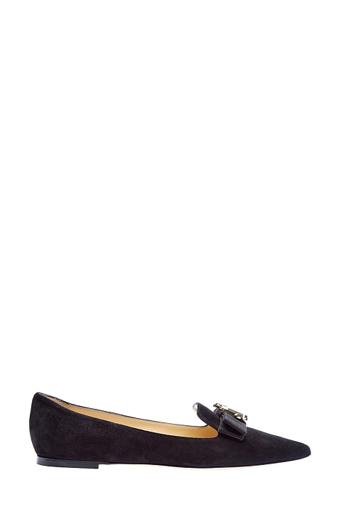 Замшевые лоферы с 3D-логотипом и острым мыском