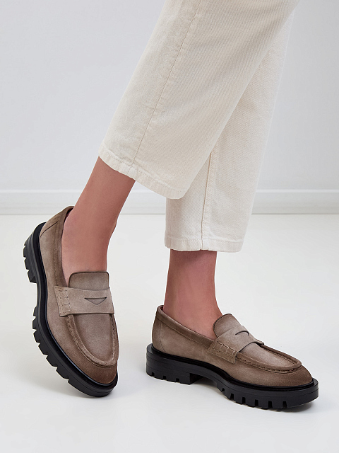 Пенни-лоферы из окрашенной вручную замши на массивной подошве